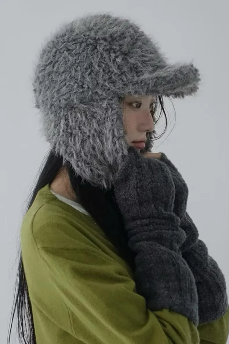 Dec2537灰色QQ毛絨護耳帽