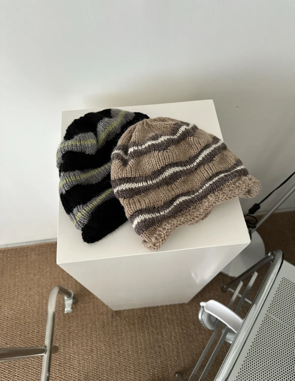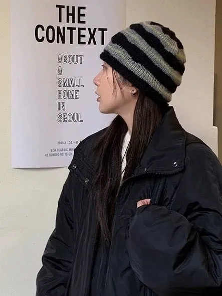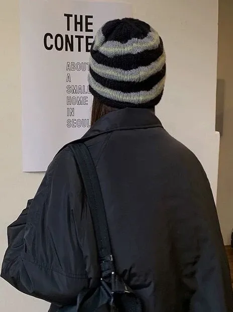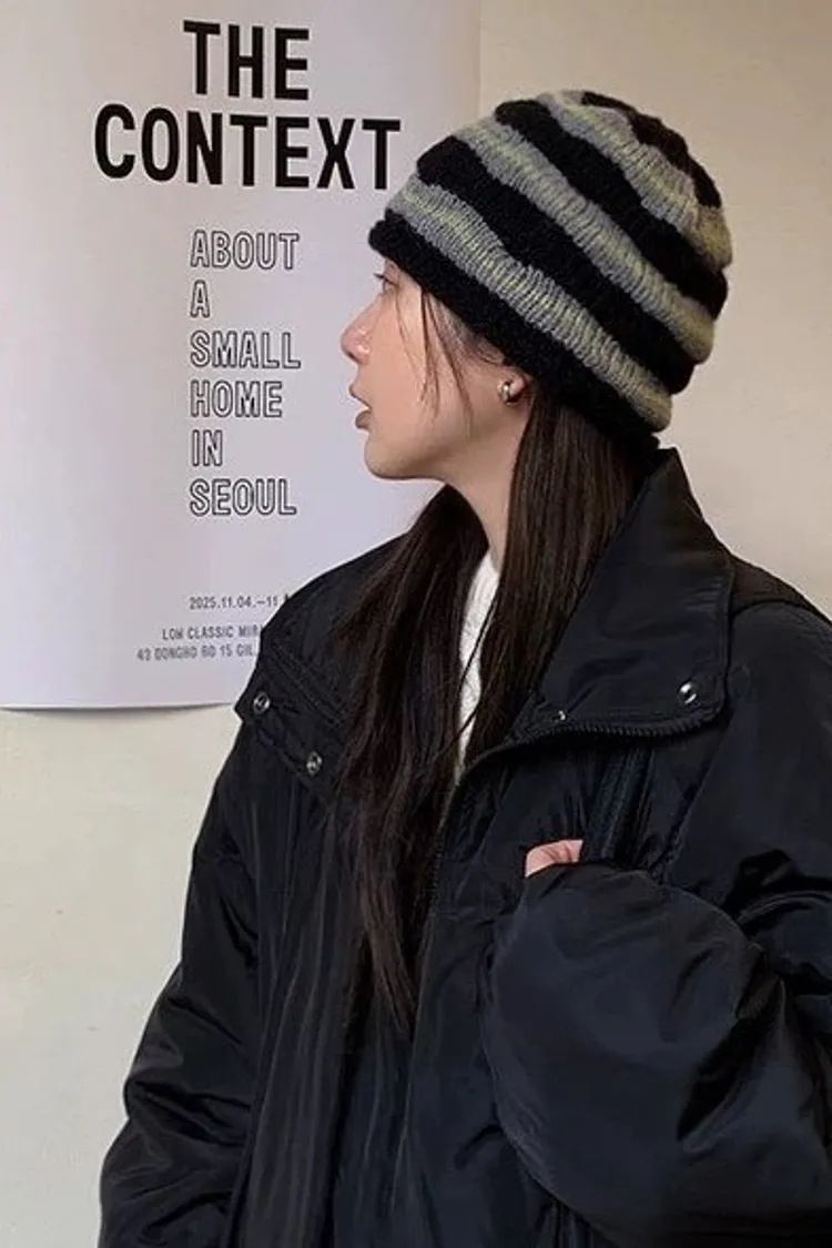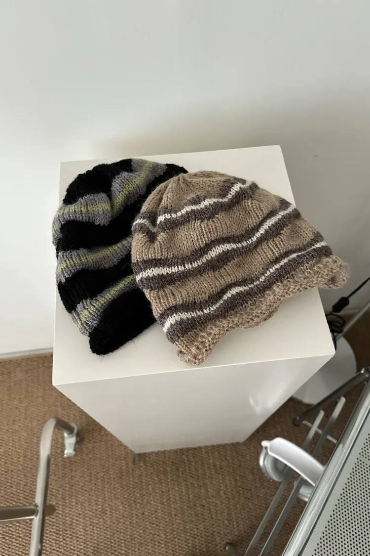 Dec2539波浪條紋捲邊毛線帽