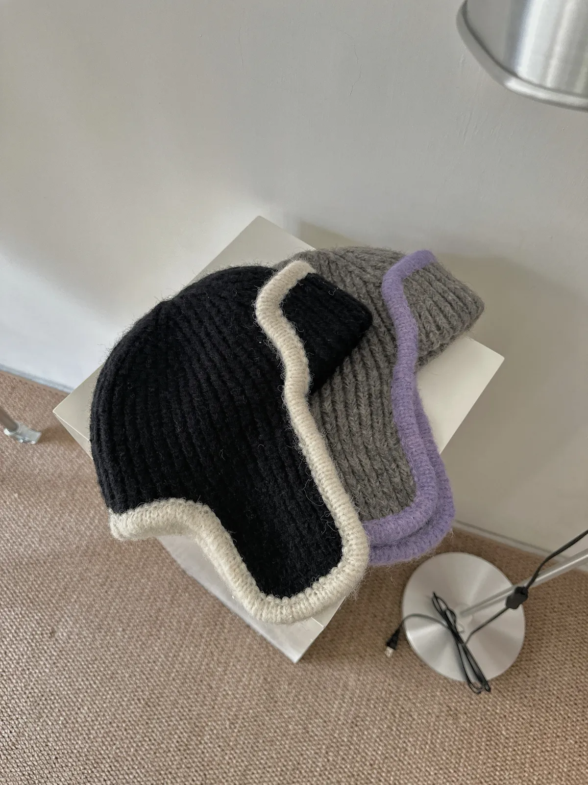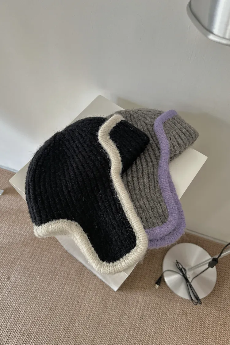 Nov2539可愛撞色邊毛線遮耳帽