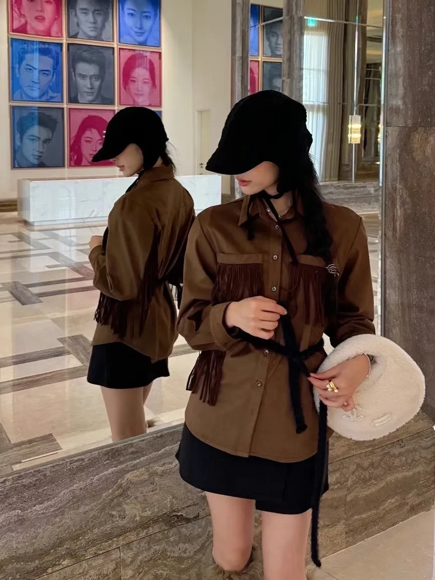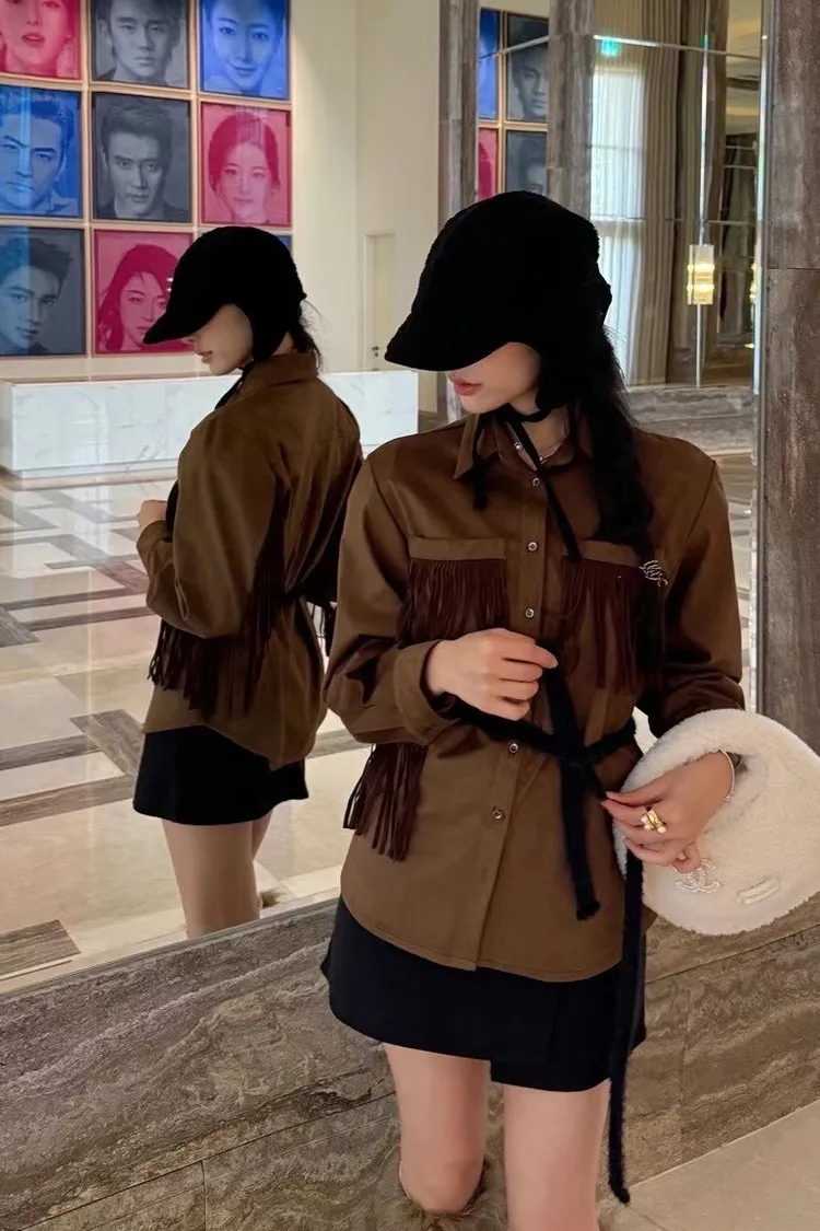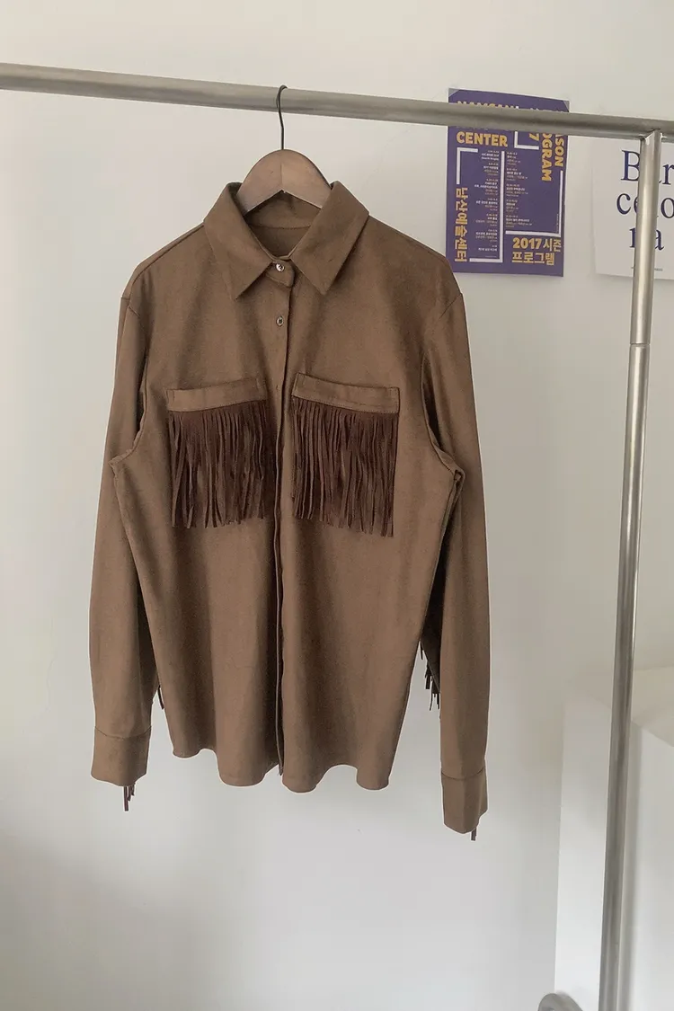 R63柔軟麂皮流蘇襯衫